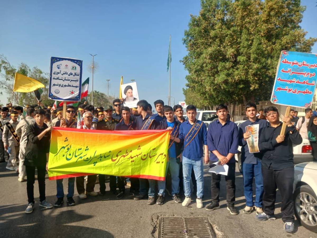راهپیمایی ۱۳ آبان با حضور گسترده و پرشور مردم بصیر و همیشه در صحنه بوشهر و جمع کثیری از دانشآموزان، از میدان قدس آغاز شد و جلوهای باشکوه از وحدت، بصیرت و ولایتمداری و پایبندی به آرمانهای امام (ره) و حضرت امام خامنه ای (مدظله العالی) مقام معظم رهبری را به نمایش گذاشت.