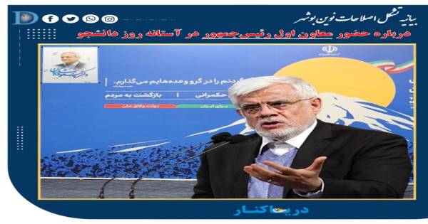 بیانیه تشکل اصلاحات نوین بوشهر درباره حضور معاون اول رئیسجمهور در آستانه روز دانشجو در استان بوشهر