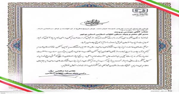 اهداي لوح تقدير رییس بنياد مسکن انقلاب اسلامی کشور به مديرکل بنياد مسکن استان بوشهر