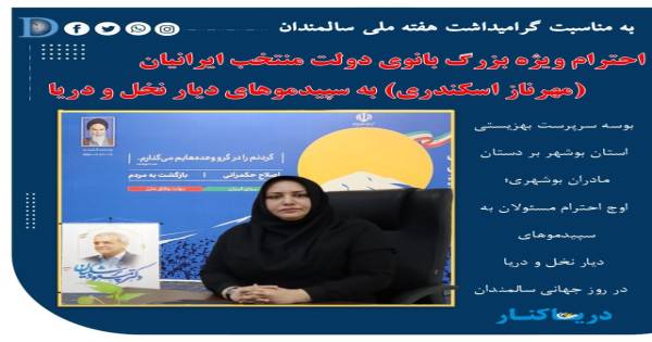 احترام ویژه بزرگ بانوی دولت منتخب ایرانیان (مهرناز اسکندری) به سپیدموهای دیار نخل و دریا