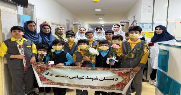 تقدیر دانشآموزان دبستان شهید عباس حسیننژاد از پرستاران بیمارستان سلمان فارسی بوشهر به مناسبت روز پرستار