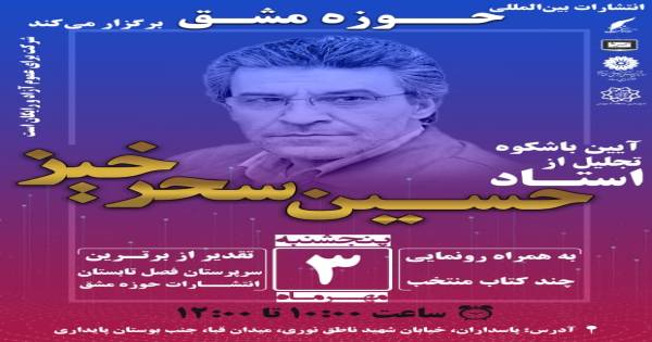 انتشارات حوزه مشق به مناسبت هفته دفاع مقدس برگزار می کند آیین تجلیل از استاد حسین سحرخیز پیشکسوت سینما تئاتر و تلویزیون